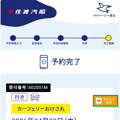 2026年4月以降乗船分の新運賃決定前にインターネットにてご予約いただいたお客様は、ご予約完了後にデジタルチケットを発行しておりません。以下の発行手順を実施していただきますと、デジタルチケットを発行できますので是非デジタルチケットをご利用ください。