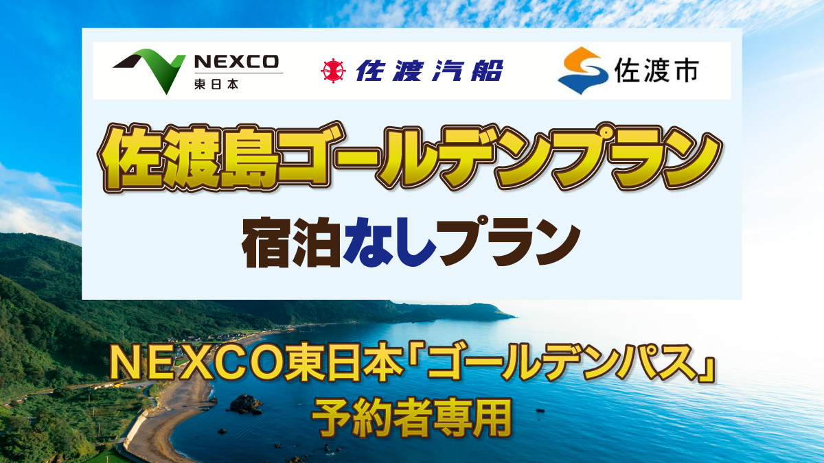 【高速道路×カーフェリー】NEXCO東日本×佐渡汽船のお得なセットプラン販売開始 2025/03/25 ニュースリリース 旅行 お得 NEXCO東日本×佐渡汽船のお得なセットプラン 「佐渡島ゴールデンパス」「佐渡島ゴールデンプラン」をリニューアル 首都圏から高速道路を利用して新潟へ行き、そのまま車を船に乗せて佐渡へ…本プランは、普通車及び軽自動車等のETC車を対象に、首都圏から新潟港・直江津港までの高速道路が最大4日間、定額で乗り降り自由でご利用いただけるNEXCO東日本のドラ割「佐渡島ゴールデンパス」と、佐渡汽船のカーフェリー往復をベースにした「佐渡島ゴールデンプラン」(宿泊ありプラン/宿泊なしプラン)がセットになったプランです。 この度、以下の3点をリニューアルし、よりご利用しやすくなりました。 従来これから①島内の指定された宿泊施設の利用が必要「佐渡島ゴールデンプラン」に宿泊なしプランを新設!②4月~11月まで利用可能通年販売(「佐渡島ゴールデンプラン」宿泊なしプランのみ)③ドラ割アンケートでの平日特典なし平日のみの利用期間ご利用で「佐渡島ゴールデンパス」アンケートプレゼント当選確率2倍! ご利用にあたっては、ドラ割「佐渡島ゴールデンパス」と佐渡汽船「佐渡島ゴールデンプラン」両方にお申し込みいただく必要があります。(片方のみでのご利用できません。) ドラ割「佐渡島ゴールデンパス」 普通車及び軽自動車等のETC車を対象に、首都圏から新潟港・直江津港までの高速道路が最大4日間、定額で乗り降り自由でご利用いただけます。 ご利用期間令和7年4月1日(火)から通年販売 連続する最大4日間 ゴールデンウィーク・お盆・シルバーウィーク・年末年始・3連休等の交通混雑期は対象外。 対象車種ETCでご利用の普通車・軽自動車等(二輪車含む)ETCコーポレートカードはご利用できません。 販売価格普通車10,000円、軽自動車等8,000円 ご利用区間周遊エリア内(下図のとおり) 「佐渡島ゴールデンパス」の詳細については、NEXCO東日本のドラ割の特設HPをご確認ください。URL:https://www.driveplaza.com/ETC/drawari/sado/ 佐渡汽船「佐渡島ゴールデンプラン」(宿泊ありプラン・宿泊なしプラン)」 佐渡島ゴールデンプラン(宿泊ありプラン) プラン内容「往復の乗船代(カーフェリー2等往復)」+「宿泊」をベースに、オプションで車両航送などを追加して組み立てる個人向けの旅行プランです。※佐渡島ゴールデンプラン(宿泊ありプラン)は、弊社の宿泊型旅行プラン「佐渡時間」がベースとなっています。 利用期間令和7年4月1日(火)から令和7年11月22日(土)まで※一旦、令和7年9月1日(月)帰着分までの販売となります。9月1日(火)出発分以降は、後日旅行紹介ページにてお知らせします。 佐渡島ゴールデンプラン(宿泊なしプラン) プラン内容佐渡島までのカーフェリー車両航送往復プランです。通常のカーフェリー航送運賃から5%お得になります。 利用期間令和7年4月1日(火)から通年販売※乗船日の2ヶ月前から予約可能 詳細は、下記案内ページにてご確認ください。 佐渡島ゴールデンプラン【宿泊あり】予約ページ 佐渡島ゴールデンプラン【宿泊なし】予約ページ ご利用特典 優待特典佐渡島内の観光施設における割引など、様々な特典をご用意しております。 アンケートプレゼントご利用後アンケートに回答いただいたお客さまの中から抽選で佐渡島の地元特産品等が当たります。また、ドラ割「佐渡島ゴールデンパス」を平日のみの利用期間でお申込みのうえご利用いただいたお客さまを対象に、プレゼントの当選確率を2倍とするキャンペーンも実施いたします。 E-NEXCOポイントプレゼントE-NEXCOpassでご利用いただいたお客さまに、通常のポイントに加えてE-NEXCOポイントを50Pプレゼント。優待特典の詳細は「ドラ割」特設ページでご確認下さい。URL:https://www.driveplaza.com/etc/drawari/ ETCマイレージサービスのポイントプラスキャンペーン当社が販売するドラ割を平日のみの利用期間でお申込みのうえご利用いただいた場合、ETCマイレージポイントを15%追加付与するキャンペーンを実施中です。詳細はドラ割HPをご覧ください。 【ニュースリリースのお問合せ】佐渡汽船株式会社 グループ企画業務部 第1課TEL:025-245-2281 (平日8:30~17:00) ニュースリリースはこちら(PDF) ニュース一覧