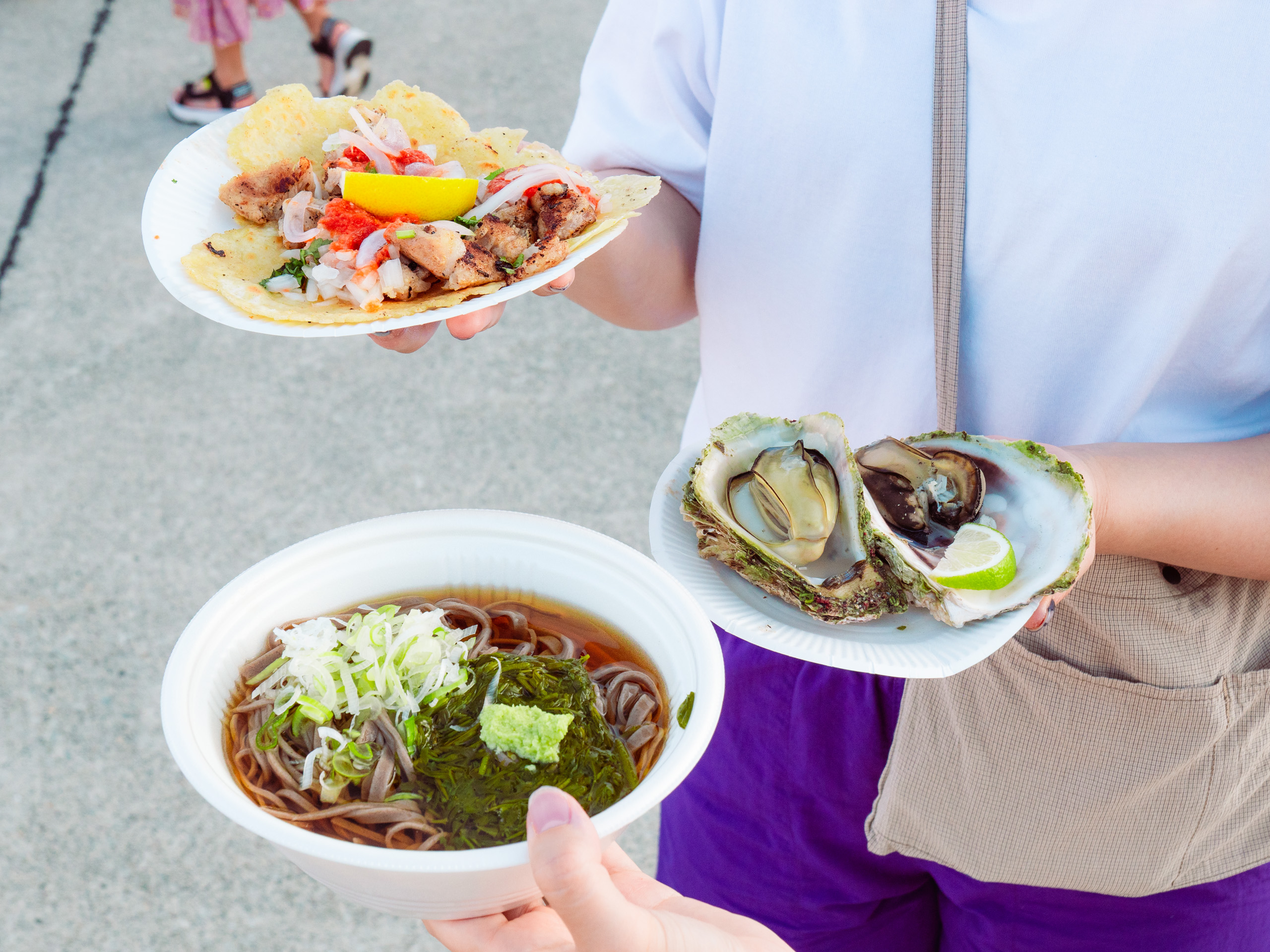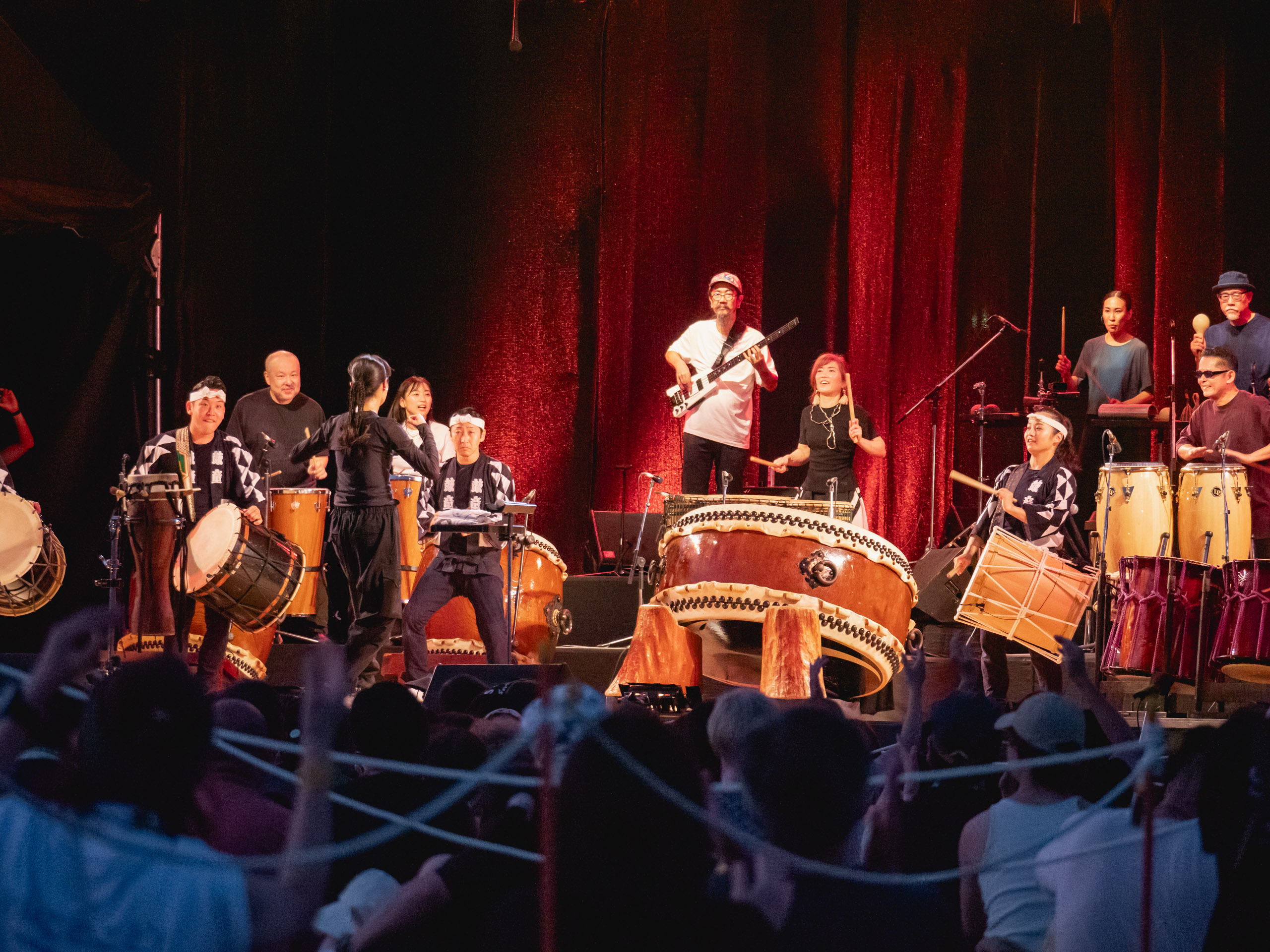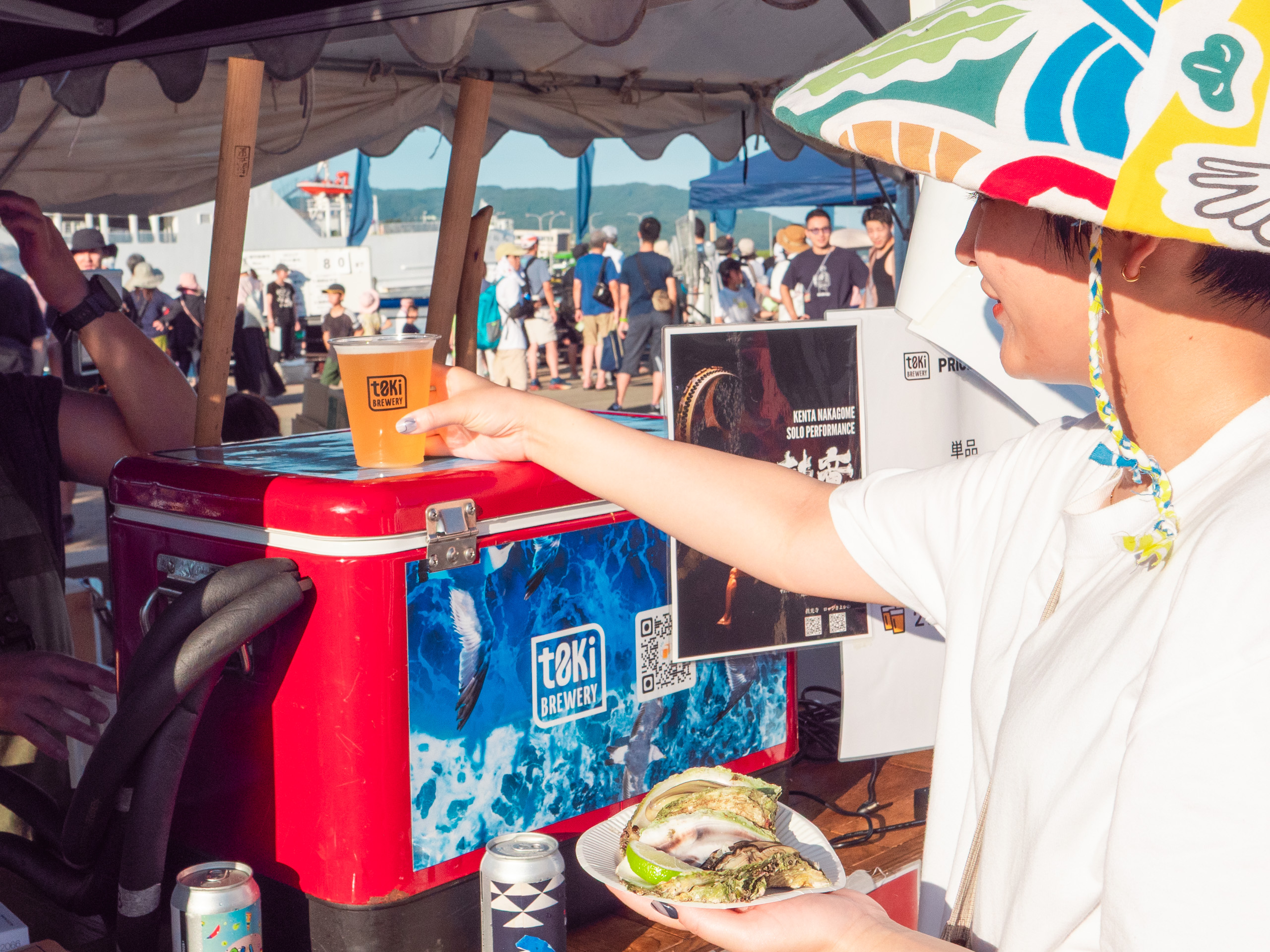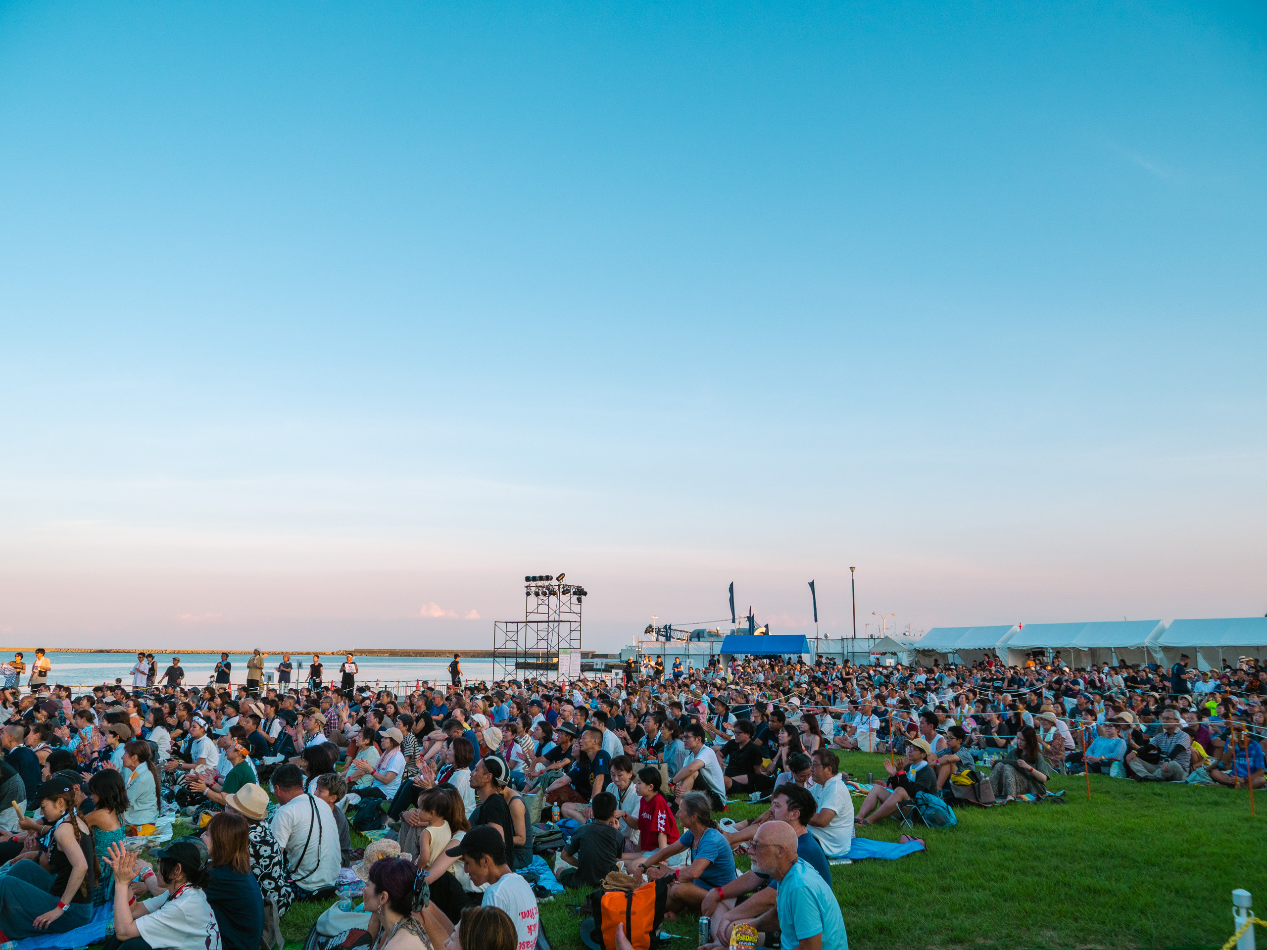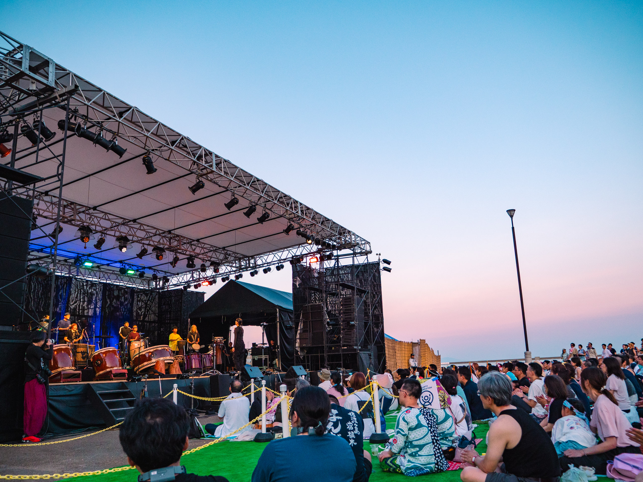 国際色あふれる!アース・セレブレーション2025現地レポート 2025/10/14 あそぶ たべる 約2万人が佐渡に集うフェスティバル 2025年8月22日から24日の3日間、佐渡市小木地区を舞台に「アース・セレブレーション2025」(以降、アース・セレブレーション)が開催されました。1988年に始まったこのイベントは、太鼓芸能集団「鼓童」と佐渡市が主催し、今年で38回目を迎えます。佐渡のみならず、国内外からアーティストや出店者、そしてアース・セレブレーションを目指して訪れた観客は約2万人。佐渡の自然と文化を背景にした“世界とつながる祝祭”として、島を代表するイベントです。 今回は、3つの注目ポイントを中心にフェスティバルを振り返ります。※モデル【旅佐渡ガール・さや】 ポイント①自然と一体となる屋外の会場 ポイント②三夜連続のハーバーコンサート ポイント③ワークショップ&マーケット 来年は2026年8月21〜23日に開催決定! ポイント①自然と一体となる屋外の会場 イベント会場は両津港から約1時間、小木港周辺に点在しています。海を望むハーバーエリアを中心に、みなと公園や小木商店街一帯がフェスの舞台。地域住民が日常生活を過ごしているのが間近に感じられる距離感や、夕暮れには海から吹く風が心地よく、夜には満天の星が広がるなど、自然環境そのものがアース・セレブレーションらしい演出の一部となっています。 一方、港町の風景に溶け込むように行われる大きなステージは、一般的な音楽フェスとは異なり自然と町とが共存する独自の雰囲気…。 天気に恵まれ、より大きな空の下で島のパワーを感じられる空間に 小木港では、直江津と佐渡をつなぐカーフェリー「こがね丸」が来客をお出迎え ポイント②三夜連続のハーバーコンサート アース・セレブレーションのメインとなるのは、海の目の前に設営された野外ステージで行われるハーバーコンサート。今年も、三夜三様のプログラムが組まれ、日替わりで賑やかな音楽が披露されました。 1日目(8月22日)「Kodo Synergy」 鼓童の単独公演。シンプルながら重厚な響きで、太鼓の音が海と夜空に反響し、佐渡の自然と共鳴するような舞台となりました。 2日目(8月23日)「el tempo × 鼓童」アルゼンチン発のリズム集団「el tempo」との共演。即興性の高い演奏と鼓童の太鼓が融合し、予測できない展開が続くダイナミックなステージが繰り広げられました。 最終日(8月24日)「祝祭 ‐ Earth Beat」海外アーティストを迎え、多文化が交わるフィナーレ。韓国太鼓や歌声が加わり、リズムと声、身体表現が重なり合う祝祭的な空気が会場を包みました。 時間帯によって変わる空や海の色合いも、演出の一部。客席には“踊りたい人専用ブース”も用意されて、多くの観客が飛んだり跳ねたり手拍子したり、それぞれの楽しみ方で音楽と自然が調和した独特の体験を提供していました。 ポイント③ワークショップ&マーケット 日中には鼓童による和太鼓ワークショップや商店街での鬼太鼓、笛や打楽器演奏などのワークショップが開かれ、観客がアーティストと一緒に演奏したり、実際に舞台に立って参加できる機会も設けられました。子どもから大人まで幅広い層が参加し、体験を通じて佐渡の伝統芸能に触れる様子が見られました。 ワークショップ「みんなでどん!太鼓体験!」では、国際色豊かな参加者たちと太鼓を演奏 2日目朝、生演奏に合わせてみんなでラジオ体操! 「佐渡の芸能 門づけ」は小木商店街の一角で行われた また、会場各所に展開されたマーケットでは、地元食材を使った飲食や民藝品、世界各国の雑貨などが並びました。天候にも恵まれ、野外でドリンクや佐渡の海鮮を頬張るなど、一般的な音楽フェスにはない、さまざまな方が楽しめる工夫が垣間見えるのも、アース・セレブレーションの魅力です。 まだまだ厚さの厳しい頃、明るいうちからビールが進みます! ちなみに、佐渡の手ぬぐいを使った笠「カッサード」は日除けとして人気を集める、アース・セレブレーションには欠かせないファッションアイテム。常連客を中心に、会場の雰囲気を彩る存在となっていました。 来年は2026年8月21〜23日に開催決定! 「アース・セレブレーション」は、太鼓芸能集団「鼓童」を中心とした音楽と世界各地の文化、そして佐渡の自然が交わる特別な風景を見ることができる、3日間限定のフェスティバル。佐渡の自然環境を活かした舞台設定、観客が主体的に参加できるプログラム、多様な文化交流。そのすべてがこのフェスティバルを価値づけています。 会場を歩けば、音楽を楽しむだけでなく、地元の人々と会話を交わしたり、佐渡ならではの食や工芸品に触れたりと、島全体が祝祭の舞台であることを実感できます。小木の港町の商店街を散策する時間も含めて、「フェスを軸とした佐渡での時間」そのものが大きな魅力となっています。 最後に、今年度のアース・セレブレーションを無事に終えた実行委員長・上之山博文さんに、今年のイ