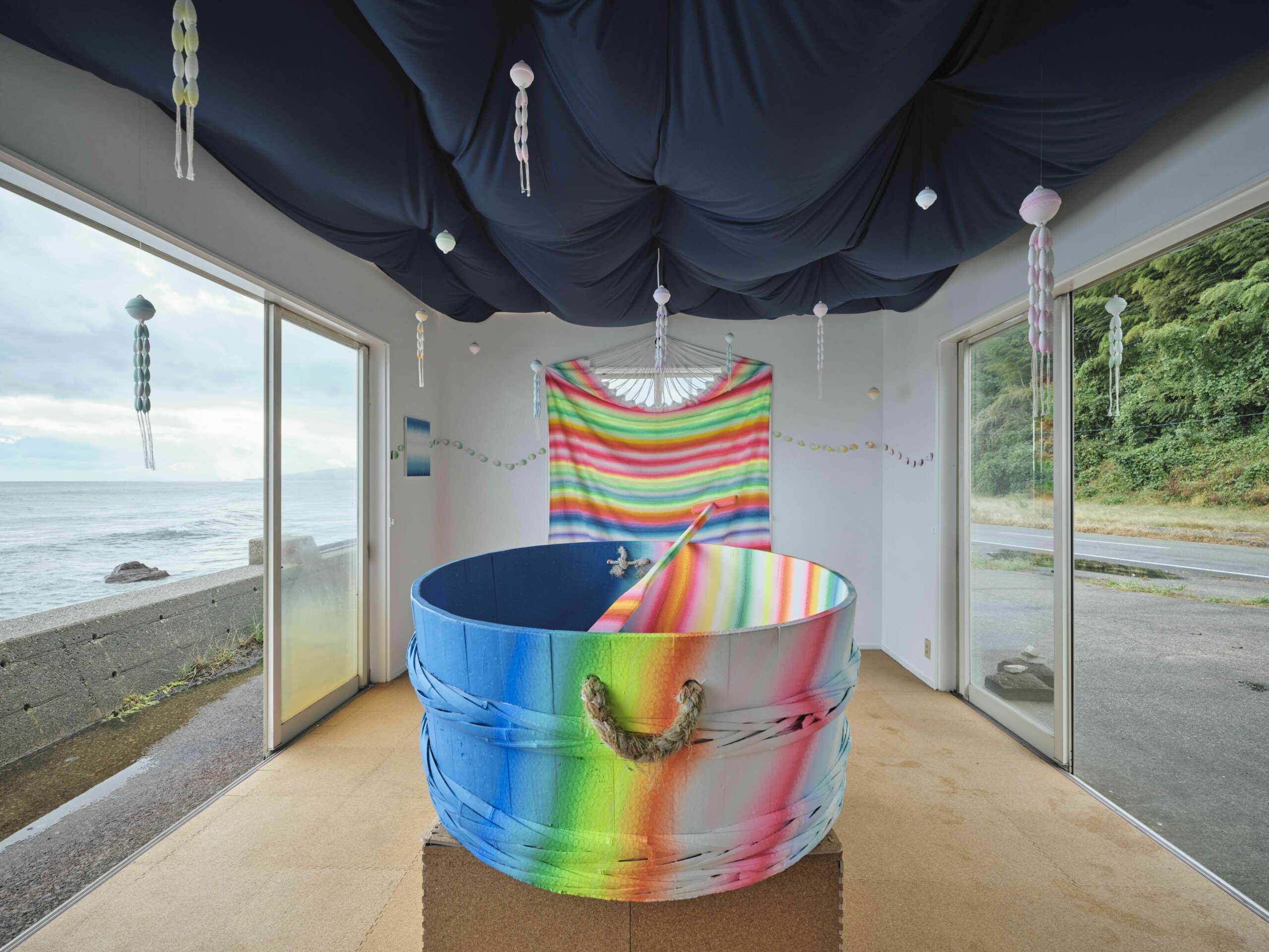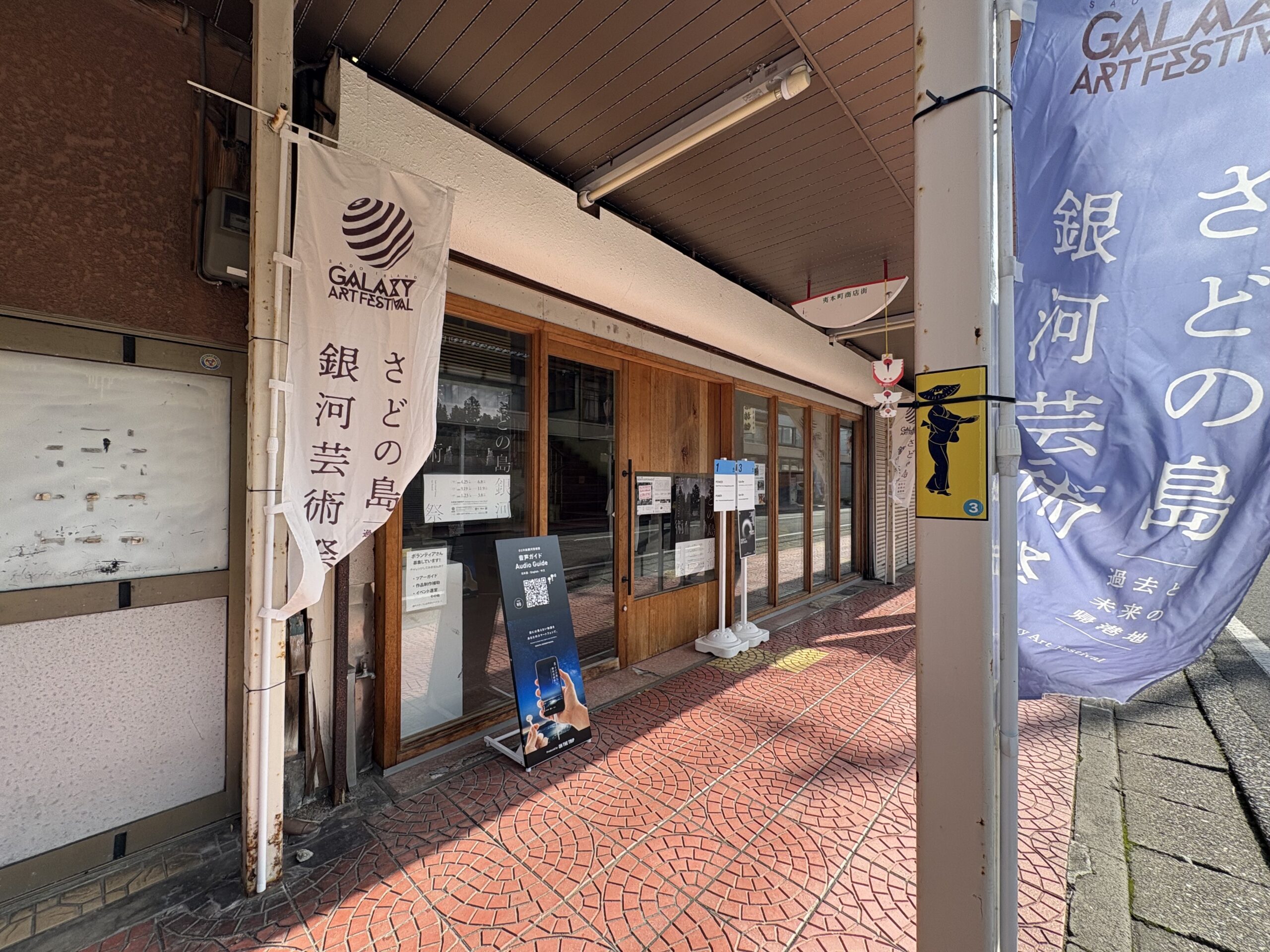 【初心者必見】佐渡島ごと美術館に?「さどの島銀河芸術祭」の楽しみ方ガイド 2026/01/30 あそぶ 「佐渡で大きなアートイベントがあるらしい」 そんな噂を耳にしたことはありませんか?今、アート好きの間で「佐渡×現代アート」が熱い注目を浴びています。その中心となるのが「さどの島銀河芸術祭(Sado Island Galaxy Art Festival)」。 「現代アートって難しそう…」「何をやっているのかわからない」という方のために、来年以降の会期にも役立つ、現地での案内所を起点にした「上手なアート旅」の始め方を徹底解説します! さどの島銀河芸術祭とは まずはここへ!情報収集の拠点「TAACHI」 五感を揺さぶる、銀河芸術祭ならではのアート体験 【初心者向け】スマートな巡り方 3つのステップ 旅の始まりは、やっぱり「船」から さどの島銀河芸術祭とは 佐渡の自然・歴史・暮らしをテーマにしたアートを、島内各地で楽しめる芸術祭です。アーティストは事前に佐渡を巡り、島の空気を感じながら作品を制作します。 作品だけでなく、道端を横切る猫の足取りや田んぼの上に出る大きな満月など、道中の景色も芸術の一部となり、大自然をキャンバスとしたアートを楽しむことができます。 ポイント ・一部作品は事前予約や現地集合が必須です。 ・作品は島内に点在しています。マイカーやレンタカーでの移動がおすすめです。 開催期間(2025年度冬会期):2026年1月23日(金)〜3月15日(日) ※作品によって公開日が異なります。公式ウェブサイトをご確認のうえご来場ください。 2026年度会期も、鋭意計画中とのこと! 公式HP:さどの島銀河芸術祭2025 | 過去と未来の帰港地 まずはここへ!情報収集の拠点「TAACHI(ターチ)」 佐渡に到着したら、まずは最新の情報を手に入れましょう。ネットも便利ですが、現地の空気感を知るなら拠点施設へ立ち寄るのが一番の近道です。 総合案内所:TAACHI(ターチ) TAACHI正面 両津港から徒歩約12分。夷(えびす)商店街にある、芸術祭のメイン拠点です。作品鑑賞パスポートの引き換えや、公式ガイドブックの購入、さらに現地のスタッフから「今おすすめの作品」を聞くことができます。 「TAACHI」自体も作品展示場所になっており、旅のテンションを一気に上げてくれます! 島内観光案内所 両津港ターミナル内と相川の観光案内所でもチケットの購入やパンフレットの入手が可能です。 五感を揺さぶる、銀河芸術祭ならではのアート体験 今回は、佐渡汽船のコンシェルジュの3名が実際に体験してきました。 佐渡汽船コンシェルジュ 佐渡汽船コンシェルジュについての記事はこちらあなたの佐渡旅をご案内。佐渡汽船コンシェルジュの出番です | 佐渡汽船公式サイト さどの島銀河芸術祭の魅力は、「かつて誰かが過ごした場所」が、アートの力で再び呼吸を始める瞬間に立ち会えることです。初めての作品鑑賞に「想像力を大きく刺激された」と話す3人。 冬会期でも見れる作品を3つご紹介します。 ①龍宮城〜🎵 ・アーティスト:できやよい(日本) 広島県在住。多数の国際展に参加。南国をモチーフにした作品が多い。 ・展示場所:旧はまゆり ・鑑賞料金:有料 ・定休日:月~金曜日(土日祝日のみ公開) 龍宮城〜🎵 佐渡といえばたらい舟。カラフルな色をよくみると、一つひとつに表情が施されているのがわかります。カキやアワビの殻、ウキといった「佐渡らしい素材」が全体にちりばめられた優しくてやわらかい作品。 たらい舟の中をじっとみると…? 道路側から見ても、また違った姿が見えてきます。 「どうしてここにハンモックが?」と、つい考えたくなる仕掛けも。 作品と海、そして佐渡のくらしがひとつにつながっている感覚。小さな空間に広がる大きな世界を、色んな角度から楽しむことができました。 ②連結性 ・アーティスト:イーサン・エステス(カリフォルニア) アーティスト兼海洋生物学者。彫刻や版画を通して、海洋が直面する課題について発信する。 ・展示場所:両津郷土博物館 ・鑑賞料金:有料 ・定休日:なし 連結性 カリフォルニアの漁師が使用していた廃棄予定のロープを洗浄して作った作品。 海洋ごみやマイクロプラスチック問題をテーマに創作を続けるアーティストならではの視点です。 「連結性」とは何と何のつながりをあらわしているのか? 静かに問いが浮かびます。 地面のロープはクジラがもぐった時にできた波紋にも見えるし、別の生き物もどんどん巻き込まれる余白を表現しているようにも見えます。当たり前に使って捨ててしまうプラスチックの怖さを実感しました。結局は捨てた人間に返ってくることも示唆しているのかもしれませんね。 ③とどめ、とどまる ・アーティスト:宮嵜浩(日本) 滋賀県在住。小学校教員を経て、現在はオンラインのフリースクールで講師を努める。 ・展示場所:旧佐渡魚市場 ・鑑賞料金:無料 ・定休日:火・水曜日 ※祝日は公開 とどめ、とどまる 佐渡の山から借りた草木を一定期間育て、また山に返すという作品。 学校という環境で育つ子供たち