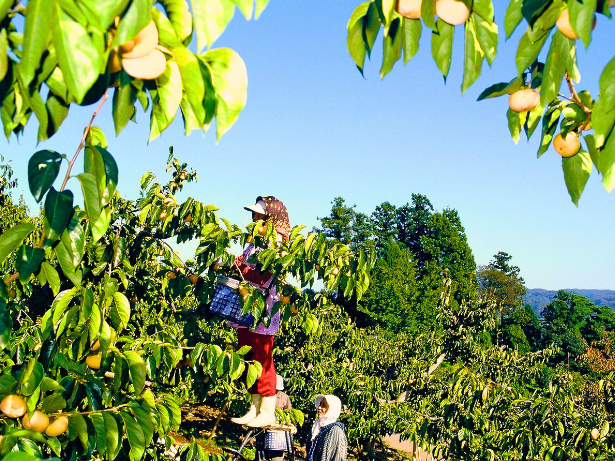 秋の佐渡島で、おけさ柿の収穫体験!