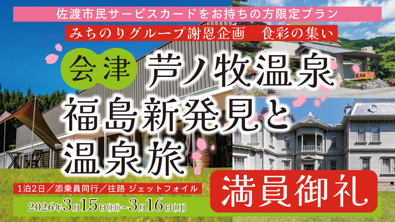 【満員御礼】【両津発/島民限定】みちのりグループ謝恩企画 食彩の集い 会津芦ノ牧温泉 福島新発見と温泉旅 1泊2日