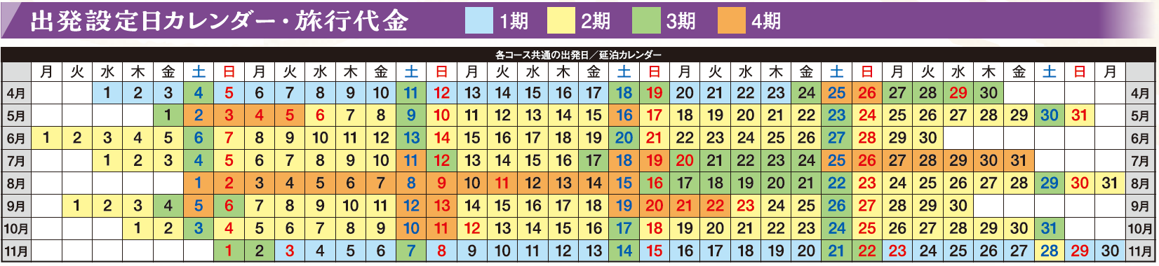 出発設定日 2026年4月1日(水)~11月30日(月)出発