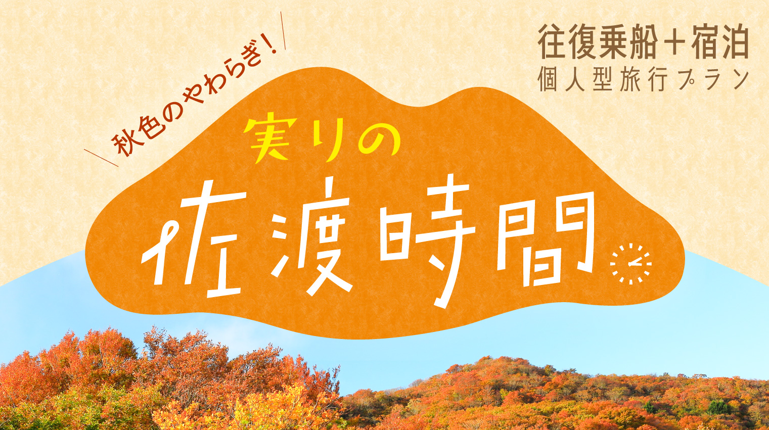 佐渡時間 宿泊型プラン 新潟港, 直江津港 ゆっくり、のんびり、心ほぐれる島旅。 「往復の乗船代(カーフェリー2等往復)」+「宿泊」をベースに、オプションで車両航送、島内レンタカー、貸切観光タクシーを追加して組み立てる、個人向けの旅行セットプランです。 旅行の計画にあわせてセットプランを組み立て、自分だけの佐渡時間をお楽しみください。 設定期間:2025年3月29日(土)~11月30日(日) ご予約は、当ページ最下部「予約へ進む」ボタンよりお進みください。 全21施設から、お好みのお宿を選択♪ ホテルタイプのベッドのお部屋から、和室の温泉旅館まで、佐渡汽船が自信をもっておすすめできるお宿をご用意しました。 画像/佐渡二ツ亀ビューホテル・客室2024年3月1日全面リニューアルオープン!オープンデッキを新設し、ロビーやお部屋も機能的に一新しました! 島内の観光施設やお土産処で使える「佐渡・新潟観光施設割引証」付き 佐渡には魅力的な観光地がたくさんあります。「佐渡・新潟観光施設割引証」でオトクに佐渡を楽しもう♪ 割引証があるとこんなに便利!たとえば…●佐渡歴史伝説館の入館料が10%OFF●観光地の売店でお買い物10%OFF●絶対乗りたい!たらい舟も50円OFF…などなどお得な特典が盛りだくさんです。 「佐渡・新潟観光施設 割引証」対象施設と特典一覧表割引証は乗船きっぷ発券時、同時に発行されます。 旅をもっと快適に。追加オプション 車両航送 【往復または回遊/1台】 19,800円 ※車長6m未満の乗用車・ワゴン車が対象※トラック・貨物車は不可 宿泊先一覧 ■両津地区■ 湖畔の宿 吉田家 【おけさコース】 朱鷺伝説と露天風呂の宿 きらく 【ときコース】 夕日と湖の宿 あおきや 【ときコース/朝食のみOK/一人旅OK】 ホテルニュー桂 【ときコース/朝食のみOK】 みなみ旅館 【ときコース/朝食のみOK】 ■外海府地区■ SADO二ツ亀ビューホテル 【特選コース】 【おけさコース】 【ときコース】 国民宿舎 海府荘 【ときコース/朝食のみOK】 旅荘 みなと 【ときコース】 ■小木・赤泊地区■ 御宿 花の木 【おけさコース/一人旅OK】 御宿 おぎの湯 【おけさコース/朝食のみOK/一人旅OK】 旅館 かもめ荘 【ときコース/朝食のみOK/一人旅OK】 サンライズ城が浜 【ときコース/一人旅OK】 ■相川地区■ 伝統と風格の宿 ホテル万長 【特選コース】 【おけさコース/朝食のみOK】 SADO RESORT HOTEL AZUMA 【特選コース/朝食のみOK】 【おけさコース/朝食のみOK】 HOTEL OOSADO 【特選コース/朝食のみOK】 ホテルファミリーオ佐渡相川 【おけさコース/一人旅OK】 【ときコース/朝食のみOK/一人旅OK】 民宿敷島荘 【おけさコース/朝食のみOK/一人旅OK】 いさりびの宿 道遊 【ときコース/朝食のみOK/一人旅OK】 ■真野湾地区■ 旅館 入海 【ときコース】 国際佐渡観光ホテル 八幡館 【特選コース】 【おけさコース】 【ときコース/朝食のみOK/一人旅OK】 Ryokan浦島 【特選コース】 【おけさコース/一人旅OK】 【特選コース】 特選コースの1泊2食利用が可能です。 【朝食のみOK】 特選コースの朝食のみ(1泊朝食)利用が可能です。 【おけさコース】 おけさコースの1泊2食利用が可能です。 【朝食のみOK】 おけさコースの朝食のみ(1泊朝食)利用が可能です。 【一人旅OK】 おけさコースの一人旅(1名1室)利用が可能です。 【ときコース】 ときコースの1泊2食利用が可能です。 【朝食のみOK】 ときコースの朝食のみ(1泊朝食)利用が可能です。 【一人旅OK】 ときコースの一人旅(1名1室)利用が可能です。 プラン概要 プラン名 佐渡時間 2025(旧 佐渡浪漫紀行) 出発設定日 2025年3月29日(火)~11月30日(日)出発 出発地 新潟港 / 直江津港 旅行代金 ≪基本旅行代金≫ 往復乗船代(カーフェリー2等)+宿泊代(1泊2食) 1名様あたり/2名様以上1室利用/消費税・入湯税込 [特選コース] 大人:旅行代金 24,500円~37,500円 小児:旅行代金 15,800円~24,800円 [おけさコース] 大人:旅行代金 19,800円~31,100円 小児:旅行代金 12,800円~20,500円 [ときコース] 大人:旅行代金 17,500円~25,300円 小児:旅行代金 11,500円~16,800円 ※朝食のみ、1名様でご利用いただける施設と代金については、下記パンフレットにて【朝食のみOK!】【一人旅OK!】マークをご確認ください。 ≪オプション≫ ・車両航送:19,800円※対象車種は車検証に記載の車長3m以上~6m未満の乗用車(ワゴン車含む)となります。 その他オプションでレンタカー、ドライバーガイド付きタクシーがあります。 旅行代金に含まれるもの ■基本セット内容 ・往復の乗船代(カーフェリー2等往復) ・宿泊 ■カーフェリー1等に変更(追加代金) ・大人片道:1,850円 ・小児片道:920円 ■ジェットフォイルに変更(追加代金) ・大人片道:2,750円 ・小児片道:1,370円 ※指定座席ご利用の場合、大人1名につき幼児1名まで無料となります。(幼児座席なし・大人のおひざにだっこ) ※大人1名につき幼児2名以上となる場合は、2人目からは別途小児普通運賃が必要です。(当日精算) ※船内案内所での等級変更差額は、上記料金ではなく通常運賃との差額となります。予めご了承くださ